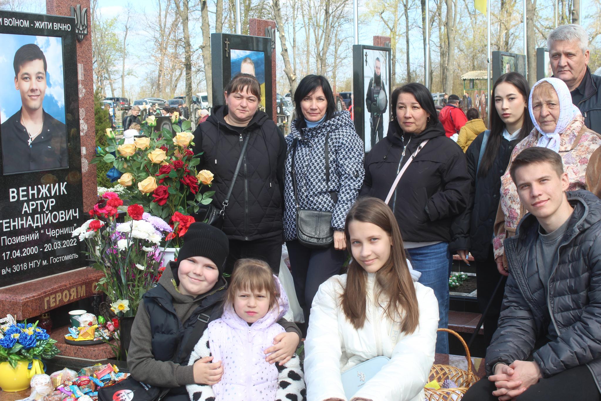 На Алеї Слави поправляли квіти у вазах Альона Венжик, Олег Іщук, Оксана Турляк з родинами, Наталія Ясінська. Всі вони вже чотири роки живуть між Алеєю Слави і домою.