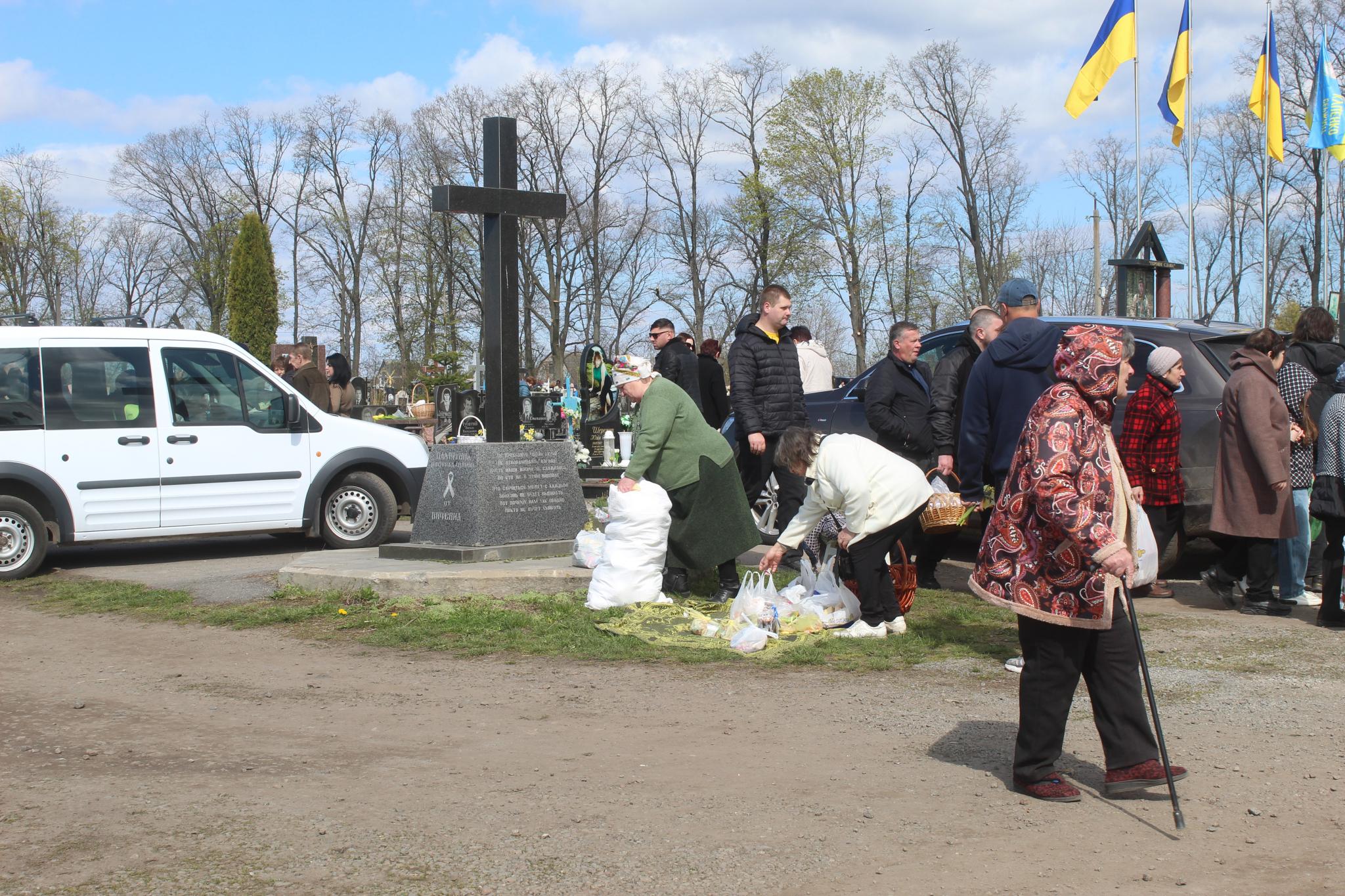 — У нас Проводи пройшли за найкращим сценарієм. Отець Іван провів гарну службу. Освятив пам’ятники Героїв України, потім освятив всі могилки на новому і старому кладовищі. Що люди принесли на могили — вони все зібрали і передали для наших захисників. Ми все помістили у ящики, потім ще будемо сортувати. Паски до пасок, крашанки до писанок і солодощі окремо. Нехай і у наших хлопців на фронті буде свято. Ще ми поставили скриньку для ЗСУ і її трохи наповнили, — каже Софія.