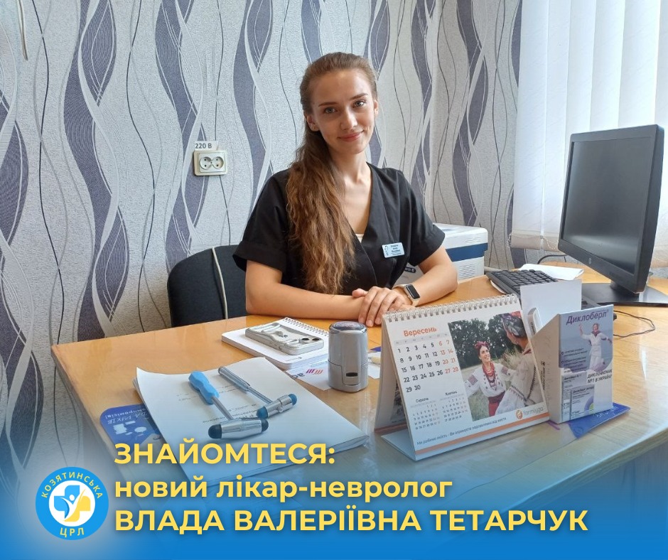 - З серпня у поліклініці Козятинської ЦРЛ розпочала прийом нова лікарка-невролог — Влада Валеріївна Тетарчук.
