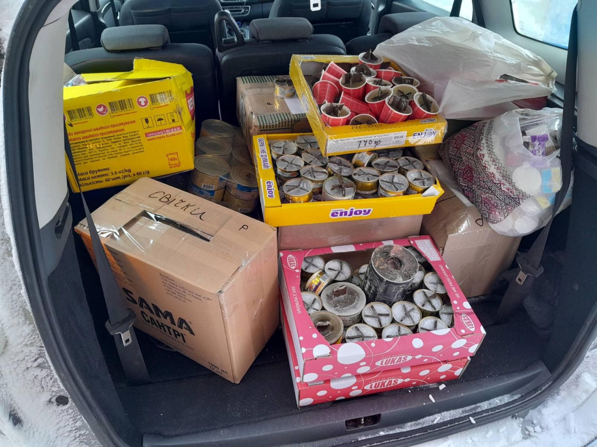 - Ярослав Міхальчук, Олександр Максимчук та Олександр Радзієвський відправили на фронт теплі речі, свічки, їжу швидкого приготування, дитячі малюнки тощо.