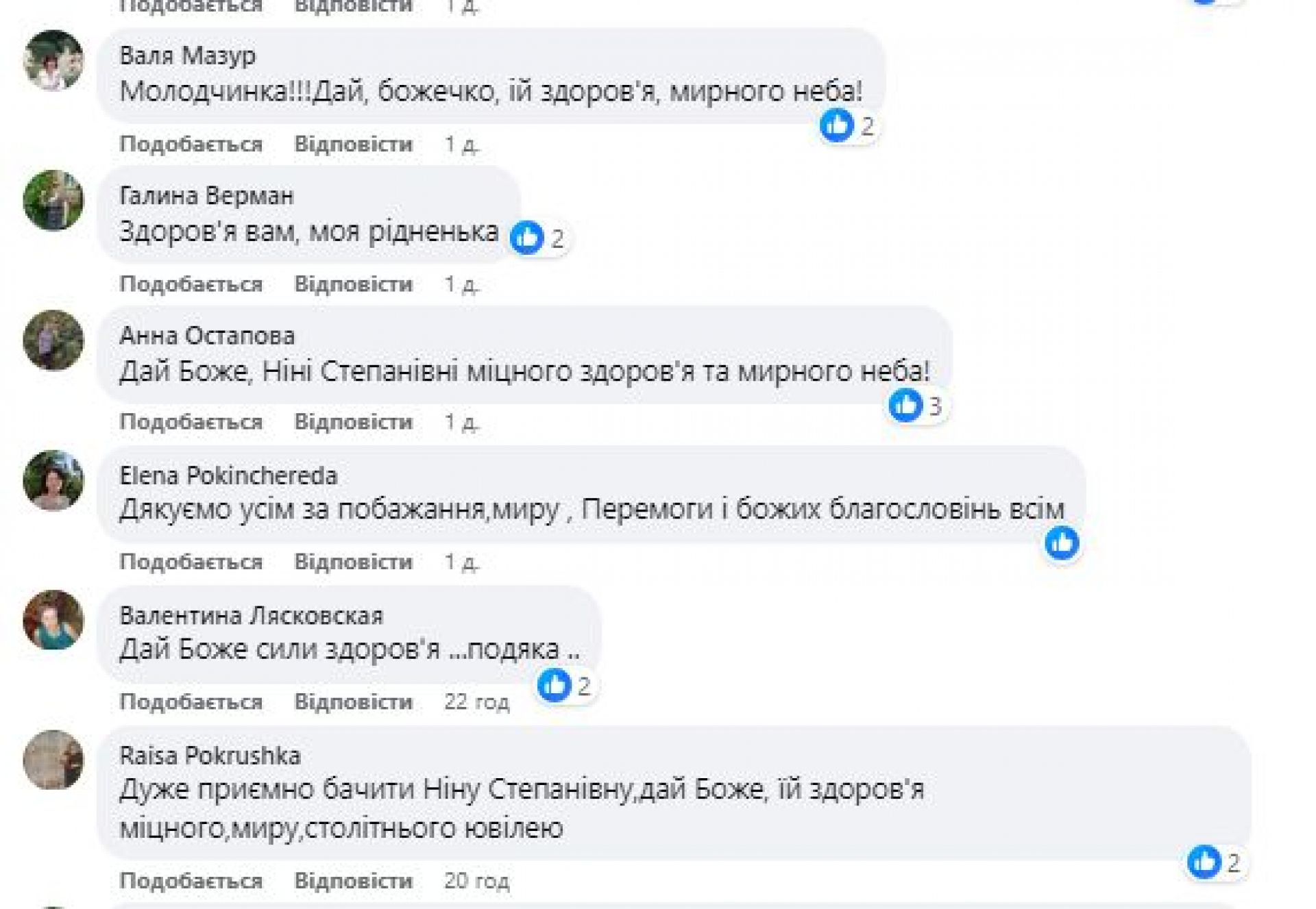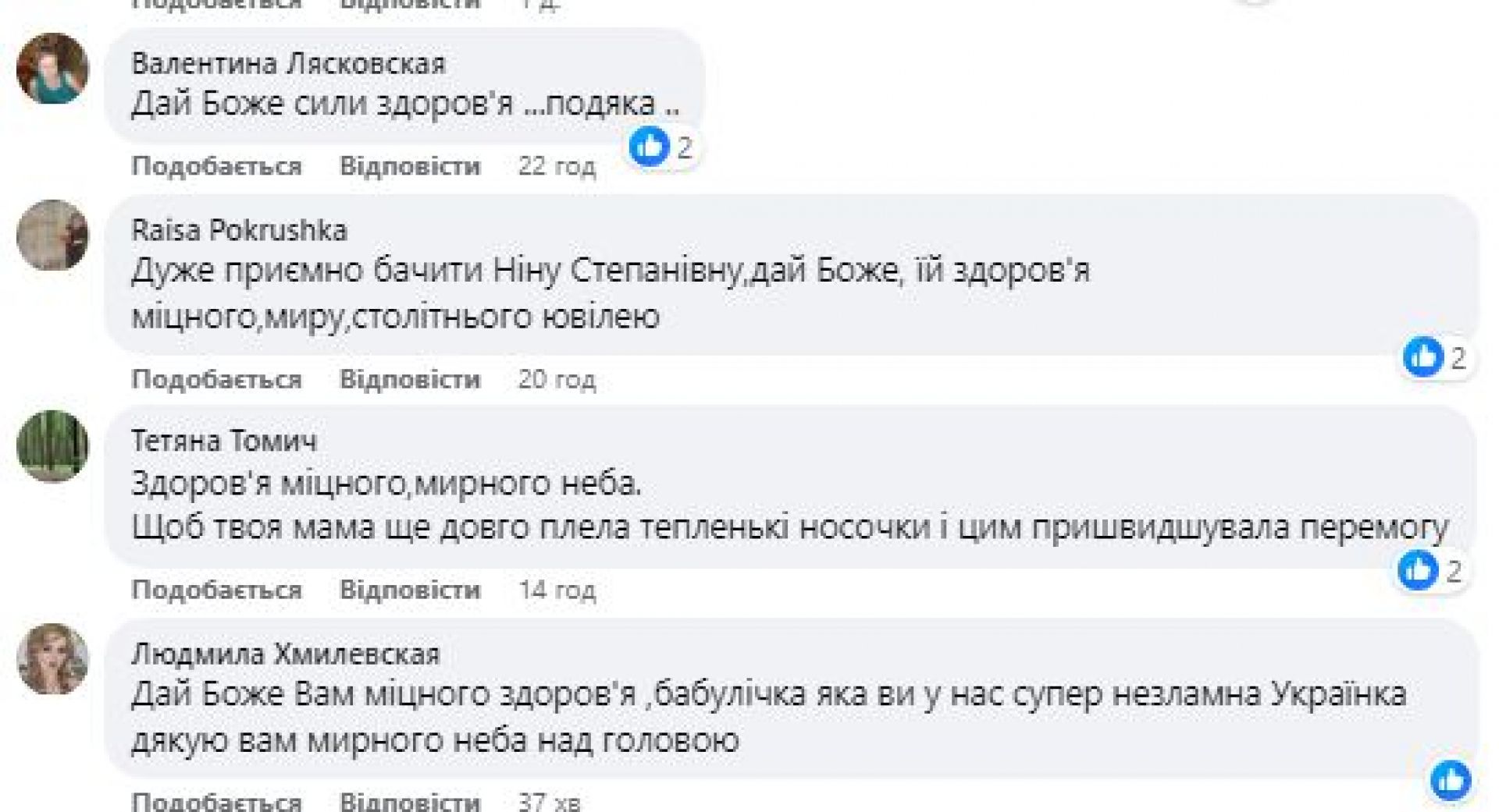 — Можливо хтось вже втомився волонтерити, тоді вам потрібно до нас. Знайомтеся Ніна Степанівна Горішняк. Їй — 90 років. Вона допомагає нам вже другий рік, — написала Світлана