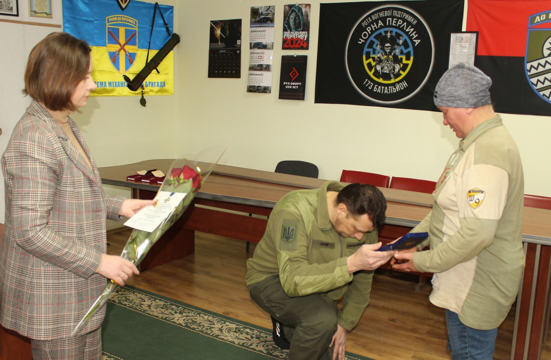Секретар міської ради Ірина Репало разом із заступником начальника Хмільницької РВА Олександром Пузирем висловили щирі співчуття сім’ям героїв. Жодна нагорода не замінить тепла рідної людини, проте ці ордени свідчать про те, що подвиг захисників назавжди залишиться в пам'яті українського народу. Громада бере на себе обов’язок дбати про збереження пам’яті про своїх захисників, які забезпечили майбутнє для наступних поколінь.