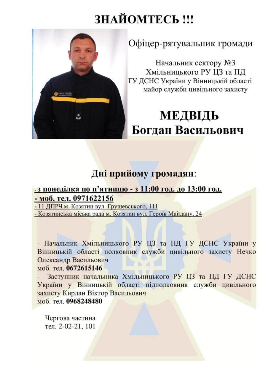 - На Козятинщині з’явилися офіцери-рятувальники. Відомо, хто на цій посаді є у Козятинській та Глуховецькій — це відповідно Богдан Медвідь та Яна Корбут.