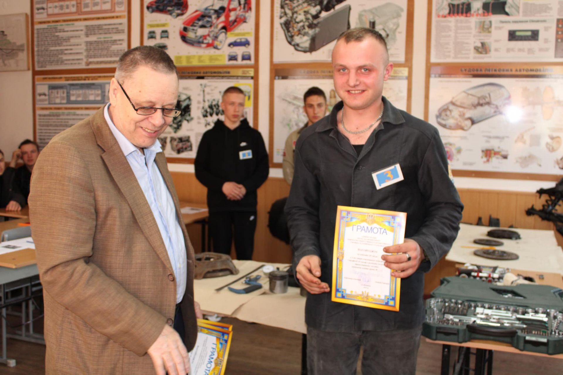 У конкурсі «Кращий за професією» брали участь здобувачі освіти групи № 332 з професії «Слюсар з ремонту колісних транспортних засобів», які навчаються на 3 курсі та незабаром отримають диплом кваліфікованого робітника: Владислав Приступко, Віктор Мордюк, Владислав Купрун. Підготовку здобувачів освіти здійснює майстер виробничого навчання Андрій Огірчук.