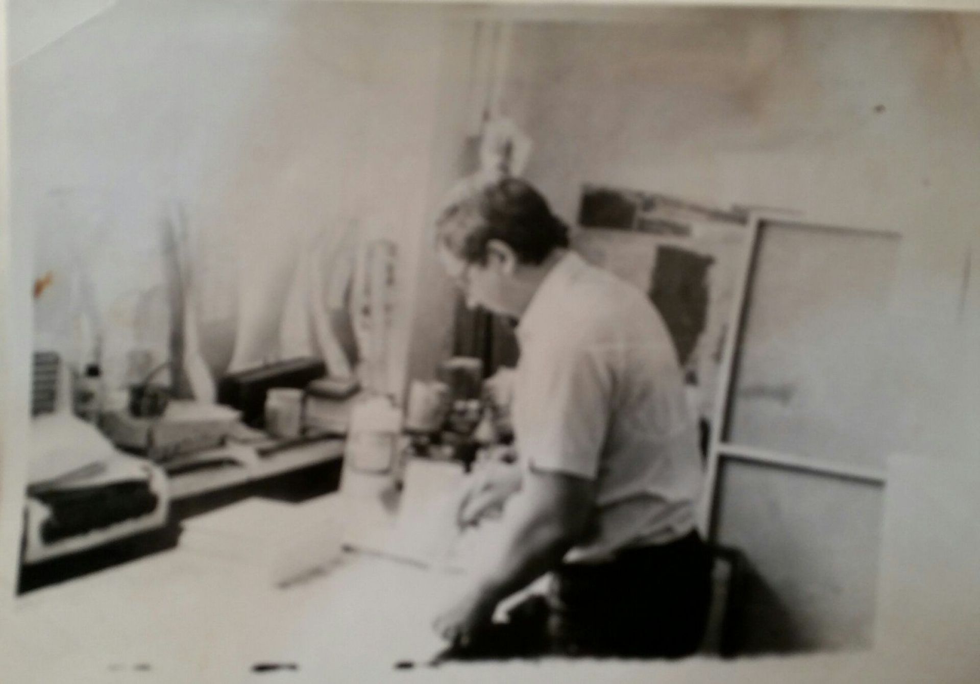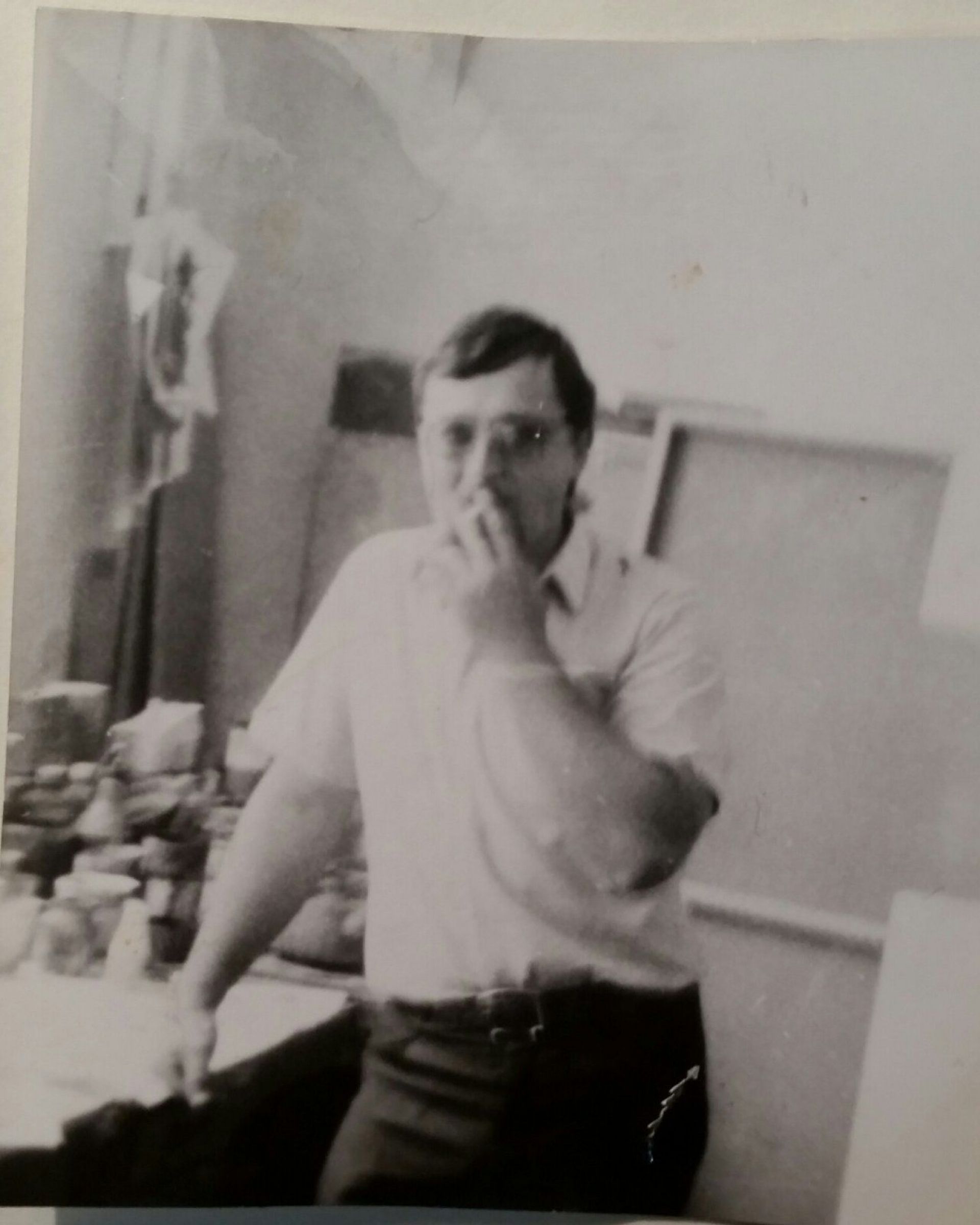 — На першому поверсі кінотеатру праворуч від входу є два кабінети, — продовжує козятинчанка. — Першим був кабінет директора, Петра Карпчука. Я називала його просто дядько Петро. А другий кабінет був татовий. Там завжди влітку були відчинені вікна і зовні можна було бачити, що він робить. Багато хто зазирав через вікно і якщо тато на місці, заходив. У майстерні у нього був довгий стіл, який стояв під вікном. Весь заставлений фарбами та пензлями. Ще у нього була спеціальна банка з розчином, в якому він мив пензлі, а потім витирав їх ганчіркою. У нього завжди акуратно все було — широкі пензлі, середні, тоненькі. Все було під рукою. Тато завжди любив порядок, у всьому. Він був дуже охайний.