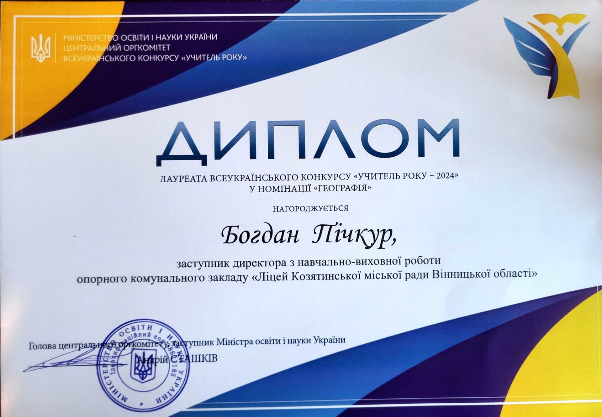 - Вчитель географії Козятинського опорного ліцею Богдан Пічкур увійшов у дванадцятку кращих вчителів України. Попереду — фінал.