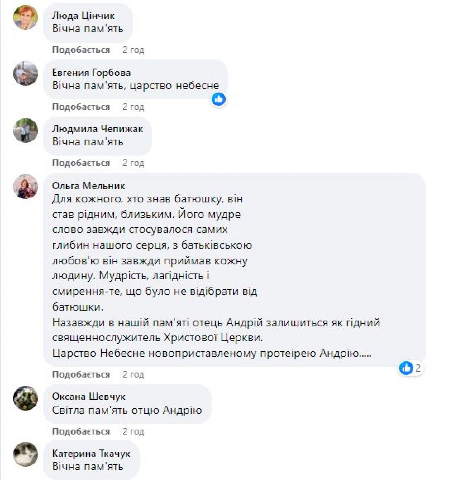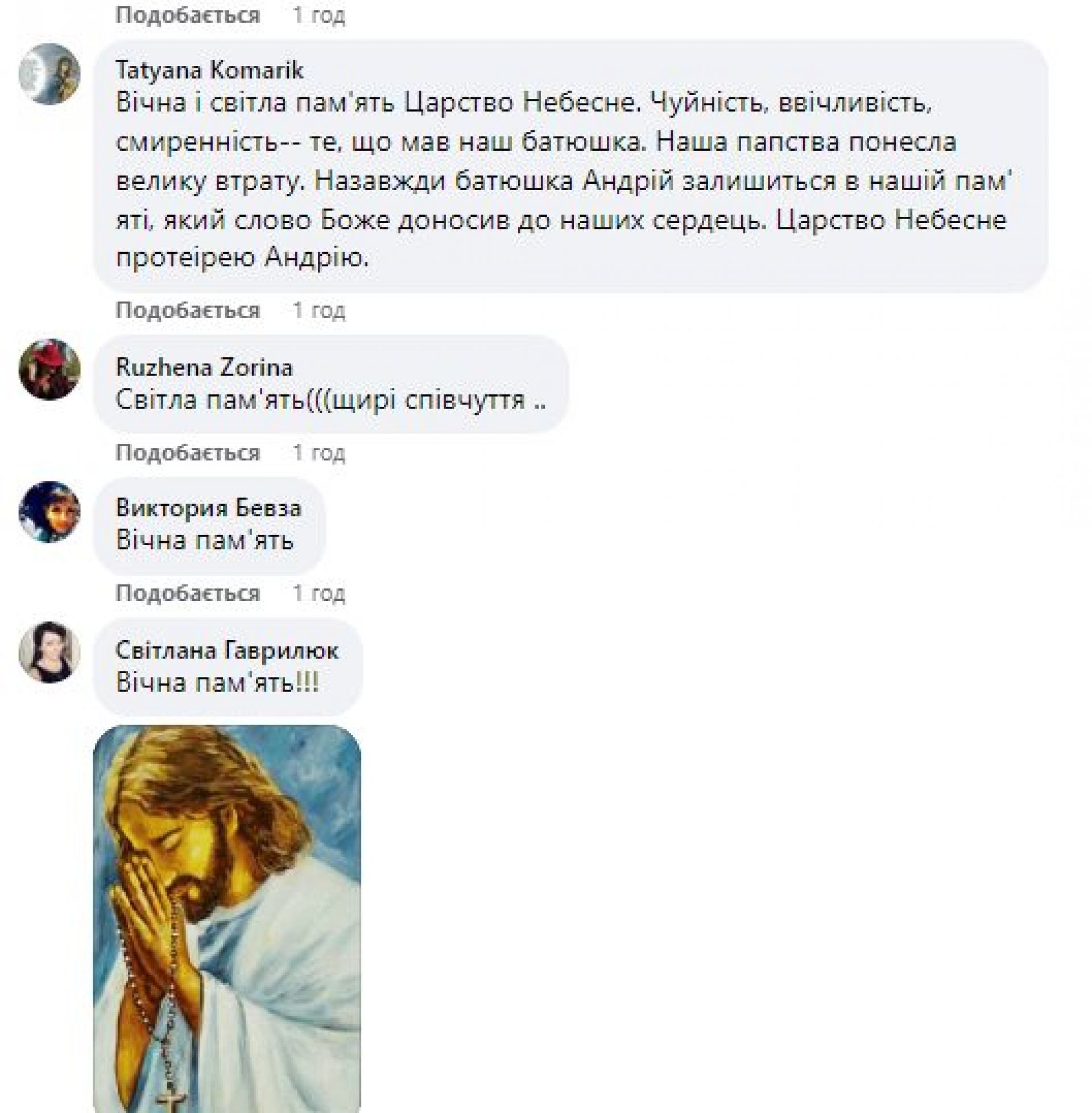 — З глибоким сумом висловлюємо сердечні співчуття дружині, дітям, всім рідним та знайомим з приводу тяжкої втрати отця Андрія ФАТИЧА. Світла пам’ять про отця Андрія вічно житиме в наших серцях. На жаль, словами важко загоїти на серці страшну рану від втрати, важко знайти слова втіхи, коли зупиняється серце, проте світлі спогади про о. Андрія, який чесно і гідно прожив своє життя, завжди будуть сильнішими за смерть. Нехай Господь дасть рідним сил пережити велике горе і прийме душу покійного у Царство Небесне. Віримо, що відійшовши від життя земного отець Андрій продовжуватиме охороняти молитвою наші села і кожного з нас, — пишуть на сторінці Самгородок Наш