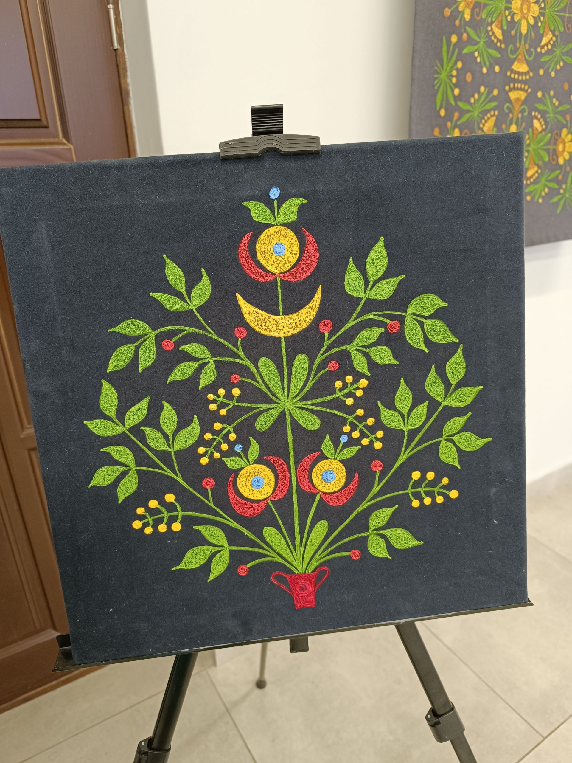 — Для мене як для художника це щось незвичне, — ділиться враженнями художниця Анжела Коренкова. — Я вперше бачу таку техніку. Вдома, на Херсонщині, я подібного не бачила. Окрім того, що це дуже кропітка, охайна робота, привертає увагу фон. Іноді здається, що чорний фон може забрати кольори і дати якусь негативну емоцію, а тут скрізь відчувається весна.