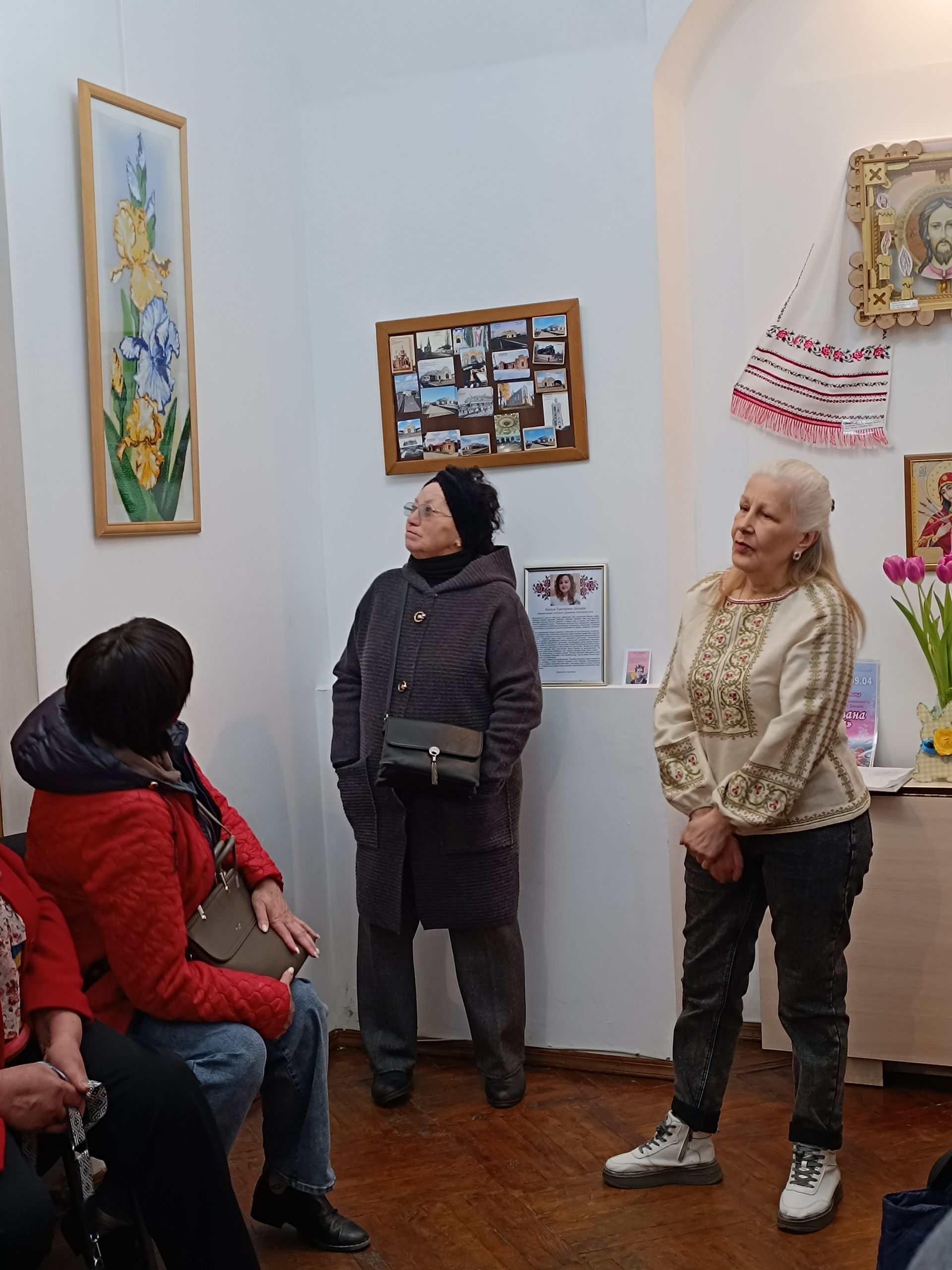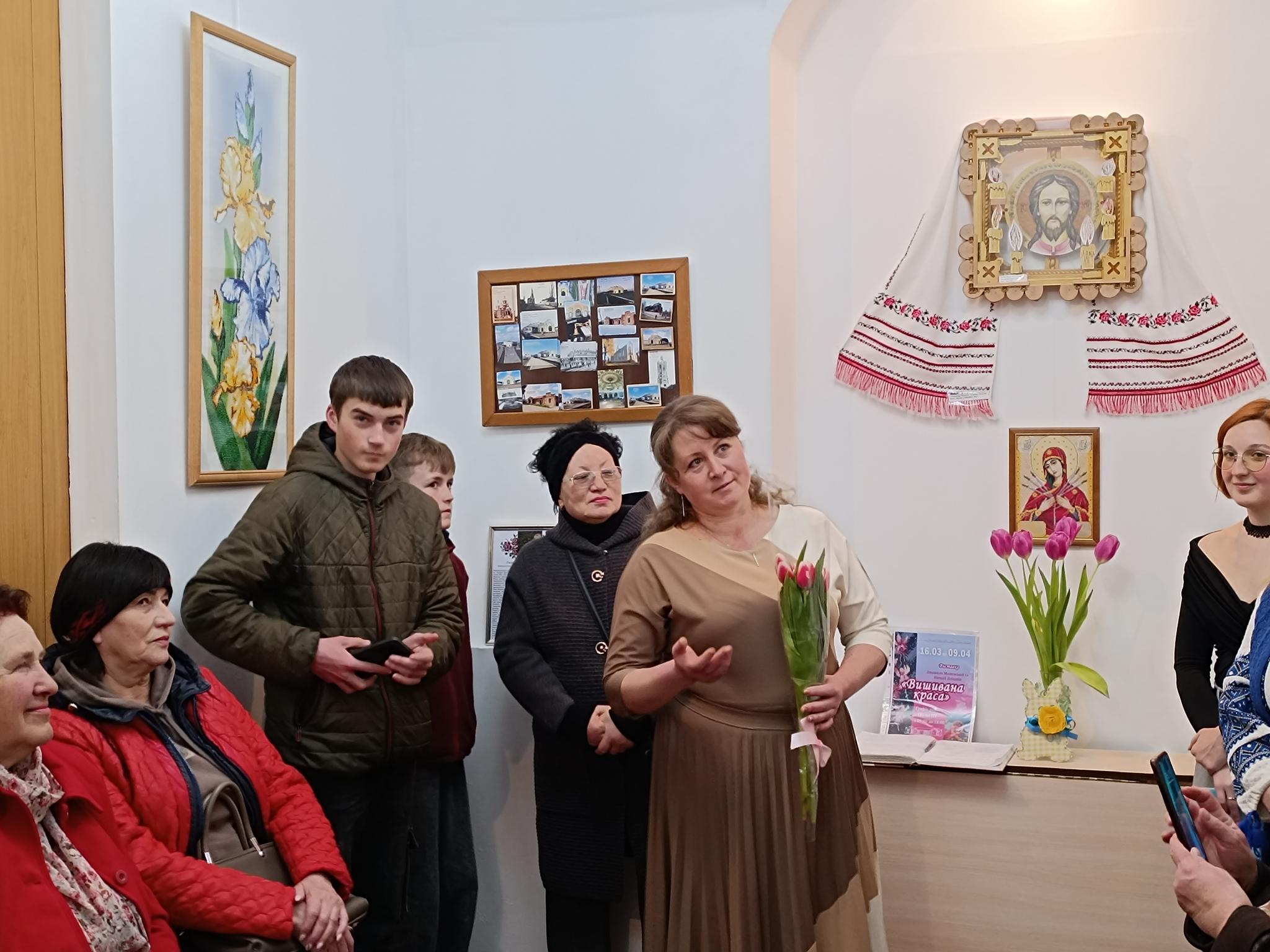 — Я голку не вміла тримати, — зізнається майстриня. — От бабуся дуже добре вишивала, все село знало, і мама так само. А я не вміла, але дуже хотіла навчитися. Впертість — хороша риса. І я почала вишивати, спочатку бісером. Потім захотілося мені вишивати Миколая Чудотворця. Звісно, треба було піти в церкву, попросити благословення, а потім вже вишивати. І на диво в мене дуже легко воно пішло. І потім картини вишила і старшому онуку, і молодшому.