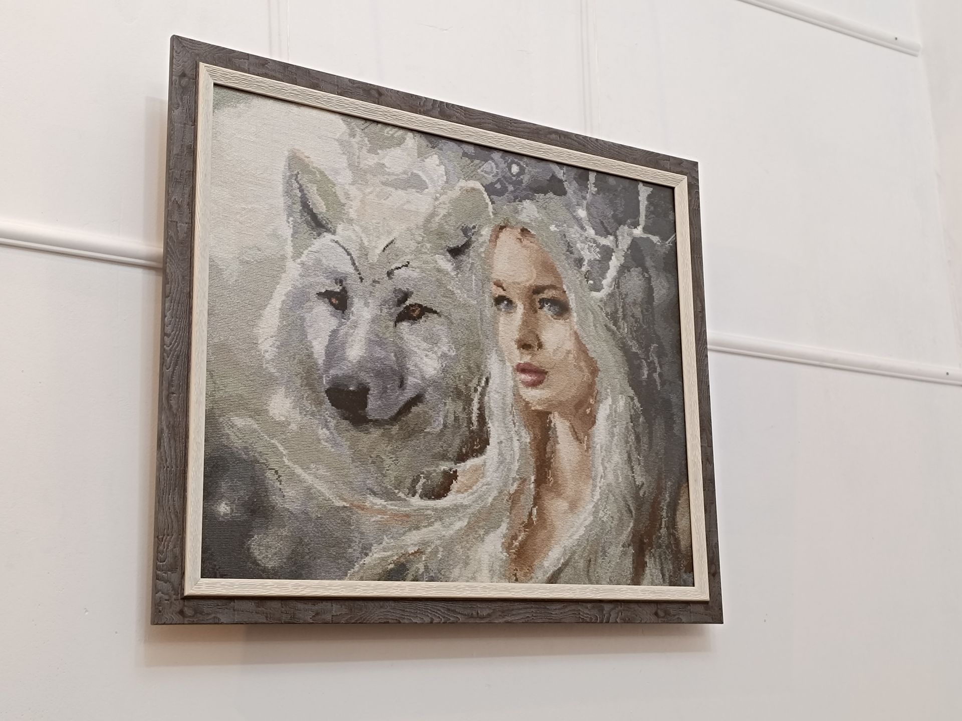 Найважче майстрині далася робота, де зображена дівчина з вовчицею. Там розмаїття сірих та коричневих відтінків.