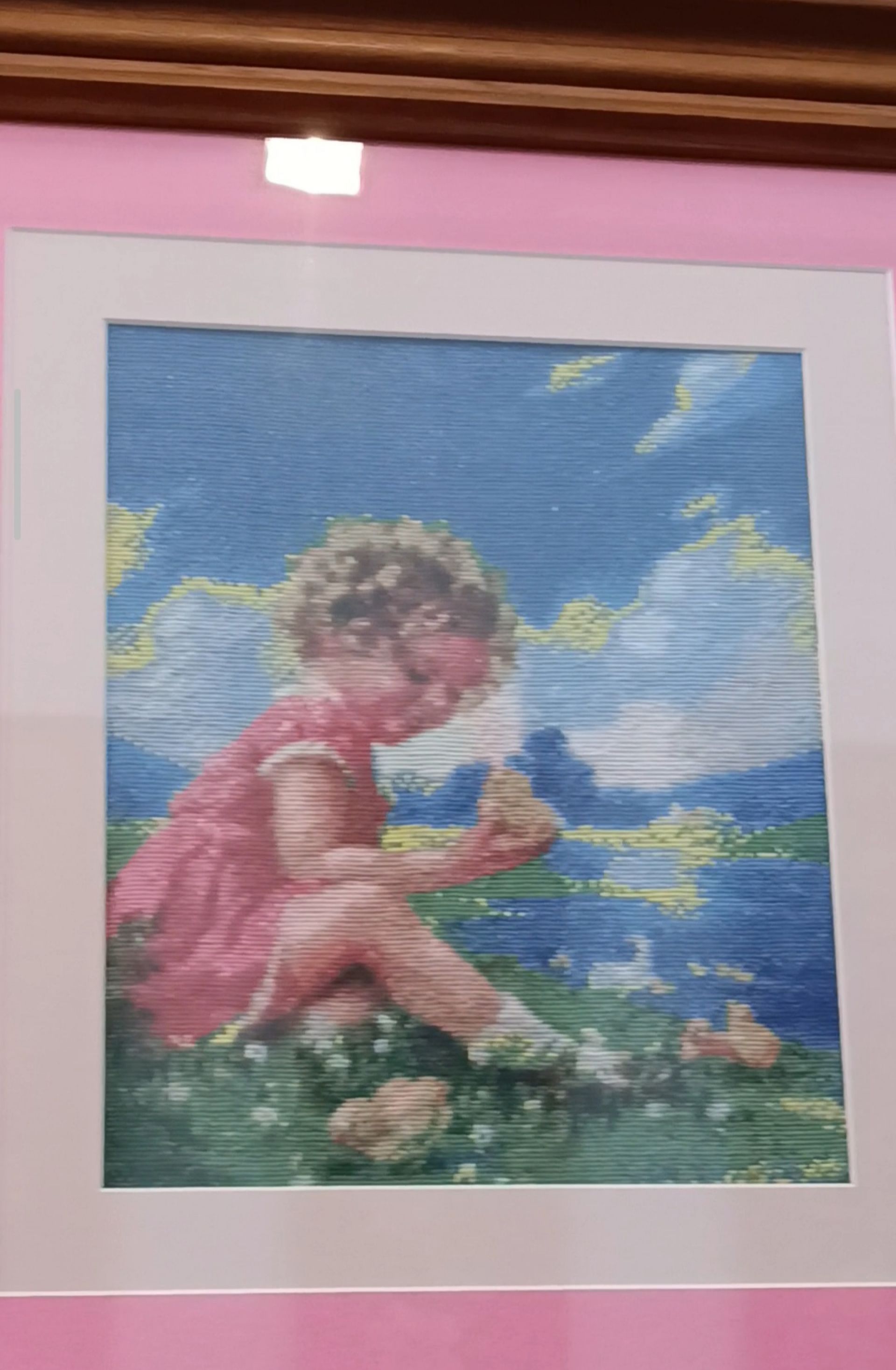 — Мені ще також подобається вишивати людей, — ділиться жінка. — Картину з дівчинкою я вишивала, коли була вагітна Ромою. Я думала, що буде дівчинка, а народився хлопчик. А моя перша робота — це хата. Я її вишила, коли навчалася в художньому училищі.