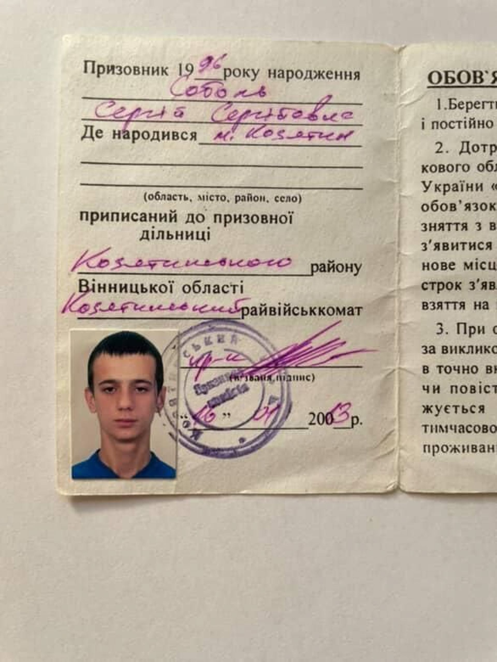 «На вимогу дружини Сергія Соболя працівники ТЦК надали фотодокази з підтвердженням місце перебування її чоловіка. За результатами ВЛК у місті Хмільнику Соболь С. С. був визнаний придатним до військової служби у частинах забезпечення, ТЦК та CП, ВВНЗ, навчальних центрах, закладах (установах), медичних підрозділах, підрозділах логістики, зв'язку, оперативного забезпечення, охорони. Жодних документально підтверджених підстав для відстрочки від призову чи бронювання військовозобов'язаний не мав, — йдеться у відповіді ТЦК, — За результатами комісії Сергій Соболь був призваний за мобілізацією та направлений до навчального центру для проходження базової загальновійськової підготовки. Наразі він є чинним військовослужбовцем Збройних Сил України».