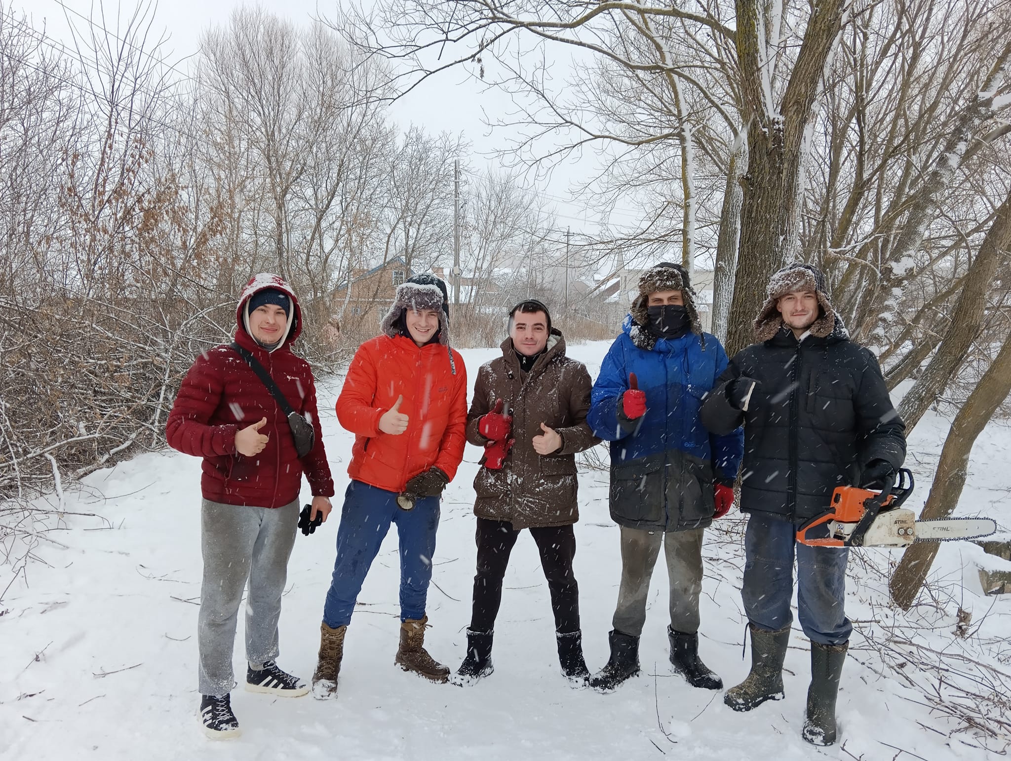 ►На цьому фото товариші розпочали цьогорічну толоку. Мороз та сніг на заваді не стали