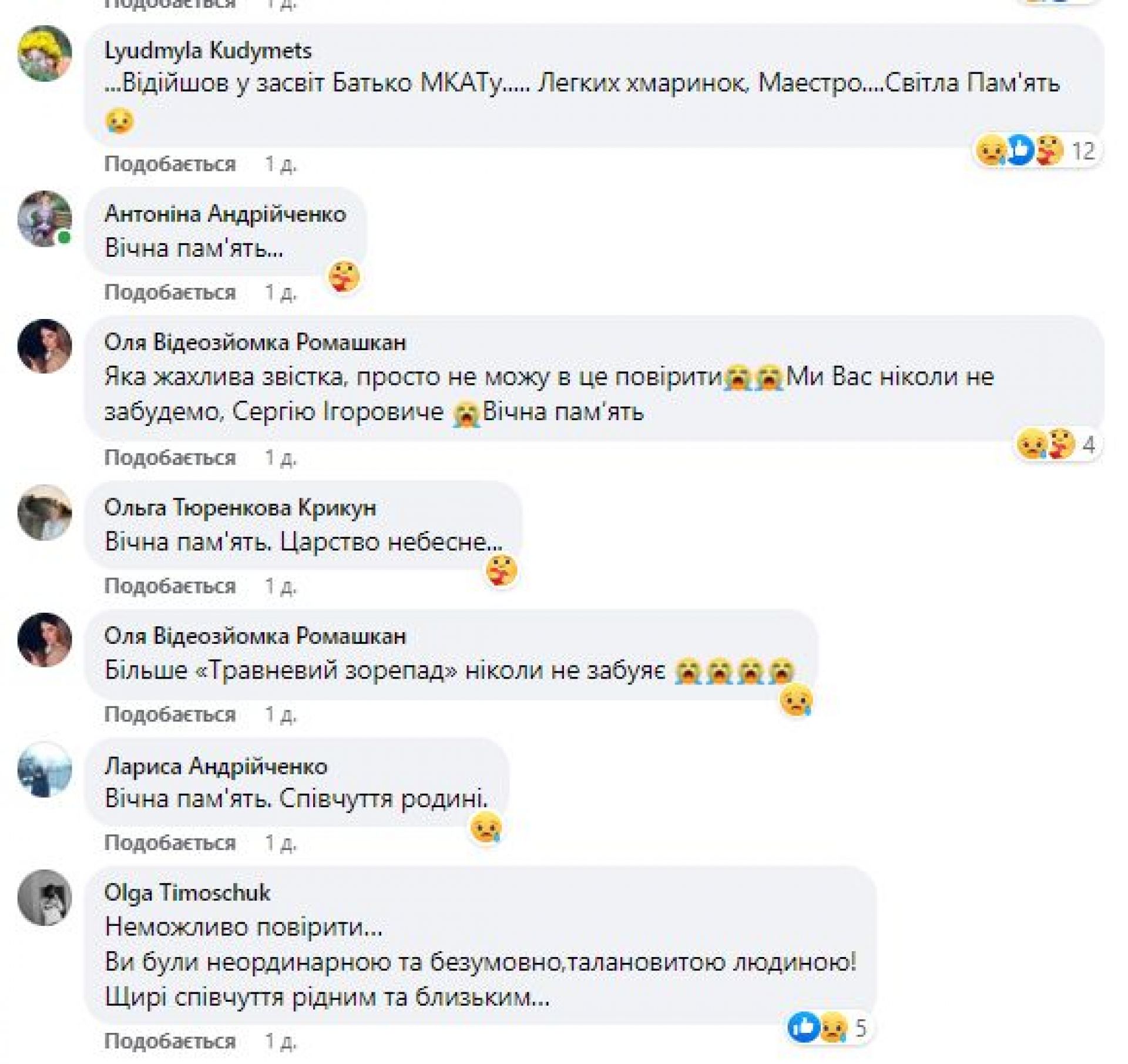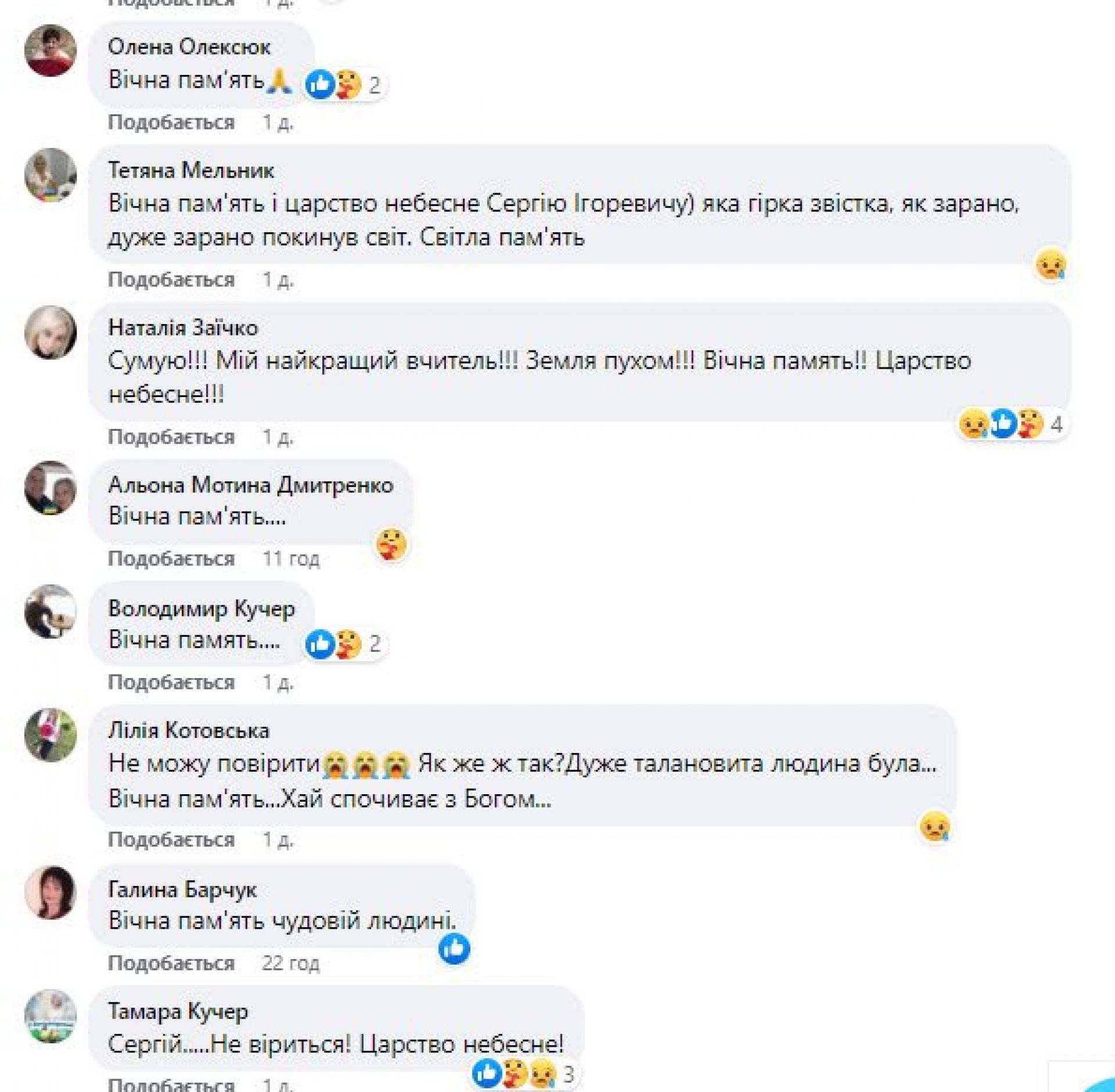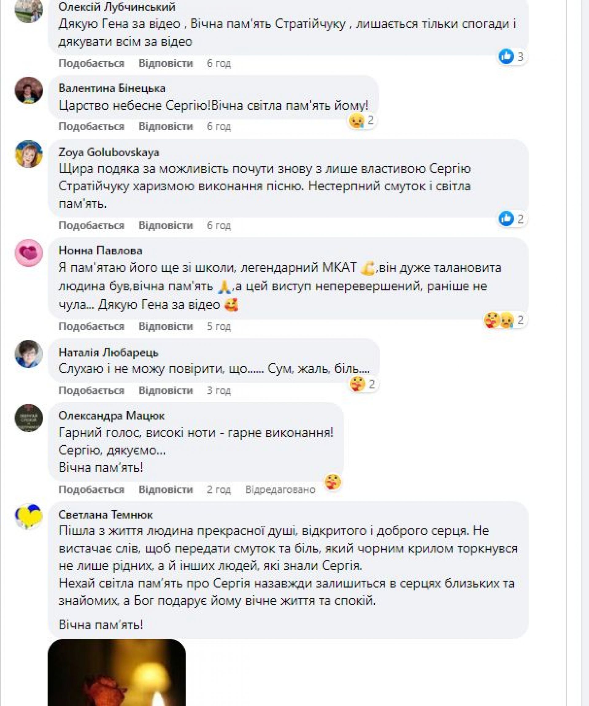 — Сумна звістка прийшла в освітянську родину колишнього Козятинського району. На 61 році життя помер наш друг, наш товариш, «душа» нашого колективу — Сергій Стратійчук. Ти завжди будеш у наших спогадах, нашій пам'яті, наших серцях. P.S...як ти міг? — написала Аліна Діденко