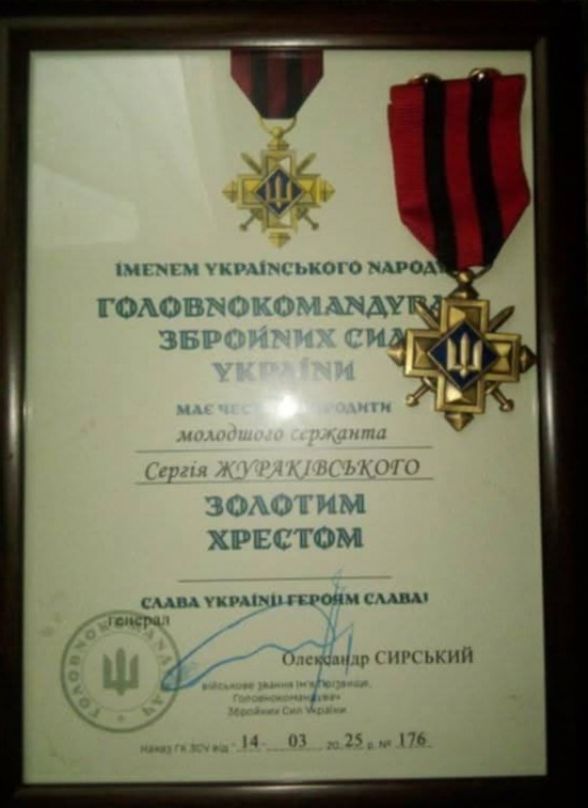 Військовослужбовець із села Тернівка Махнівської громади, молодший сержант Сергій Жураківський, отримав високу нагороду — "Золотий Хрест" від Головнокомандувача Збройних Сил України.