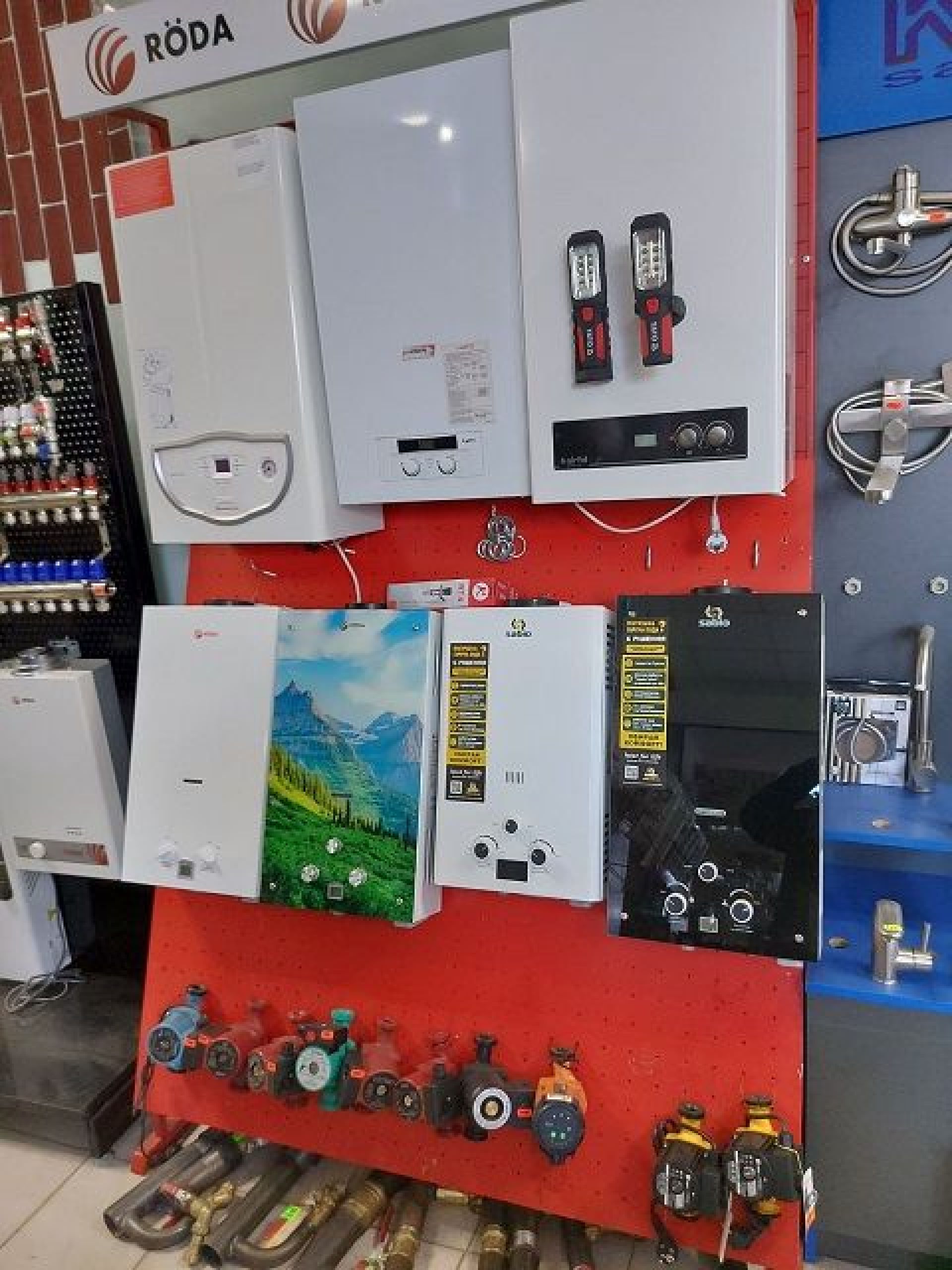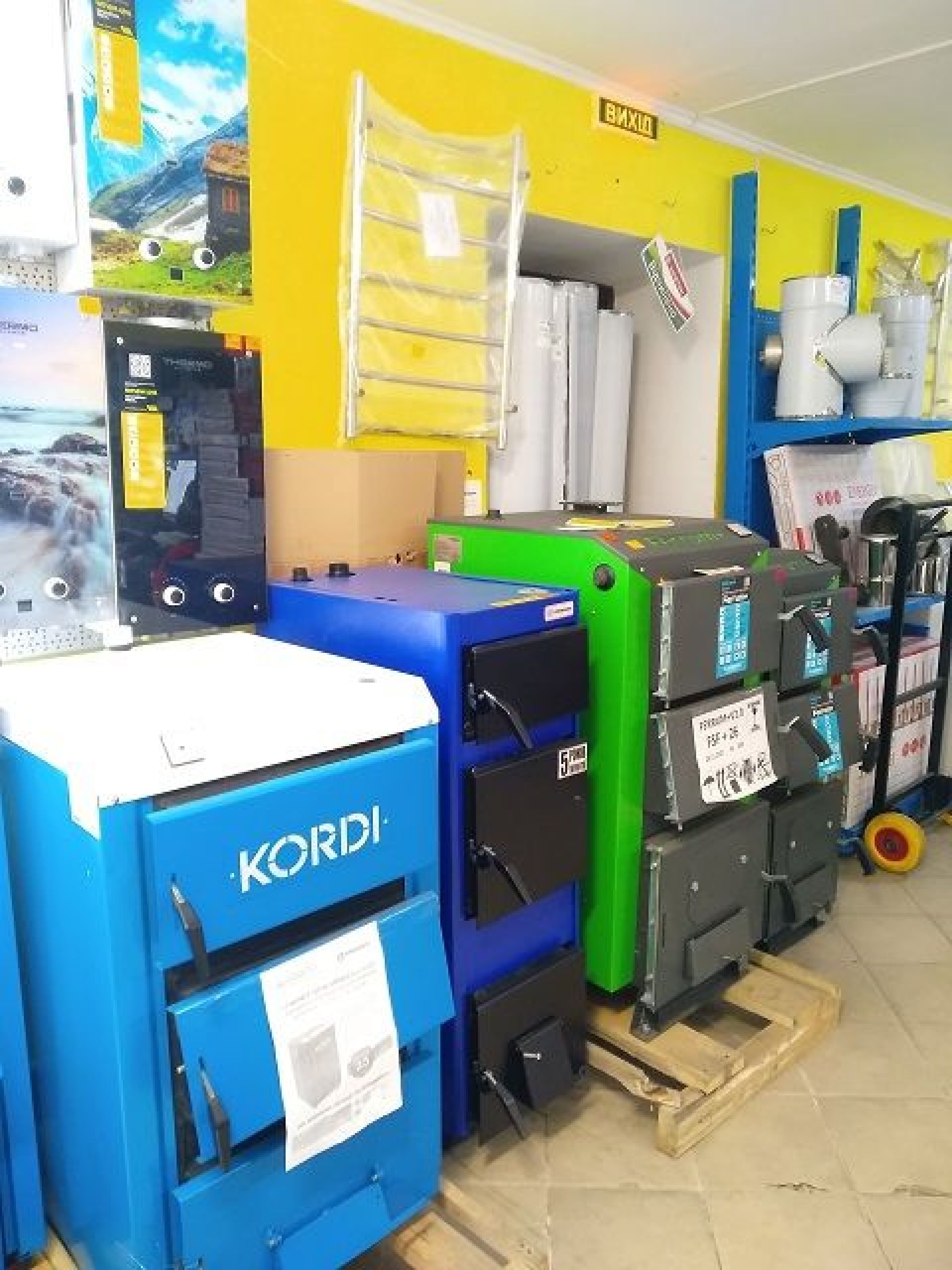 - Твердопаливні та газові котли, радіатори, газові колонки, електричні котли, обладнання для теплої підлоги, циркуляційні насоси, поліпропіленові труби