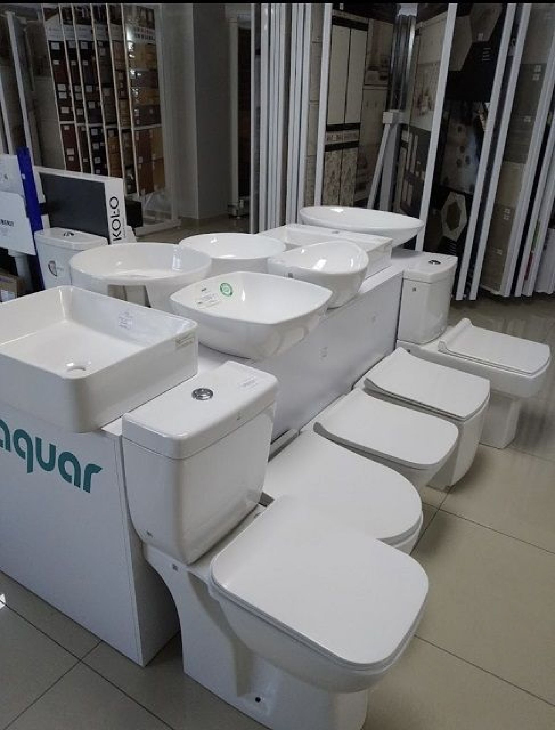 - Сантехніка: змішувачі, умивальники, унітази та інсталяції. Ванни та душові кабіни.