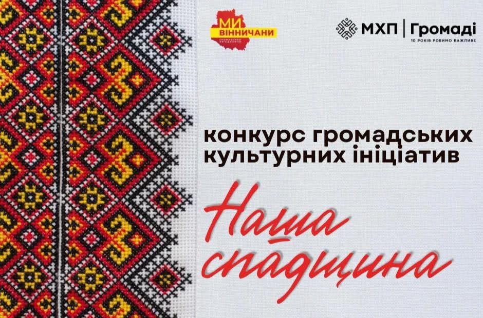 ГО «Ми – Вінничани» продовжило термін подачі заявок на конкурс «Наша спадщина» — до 10 лютого 2026 року. Це рішення ухвалене через велику кількість звернень від активних і небайдужих людей, які хочуть реалізувати культурні проєкти у своїх громадах.