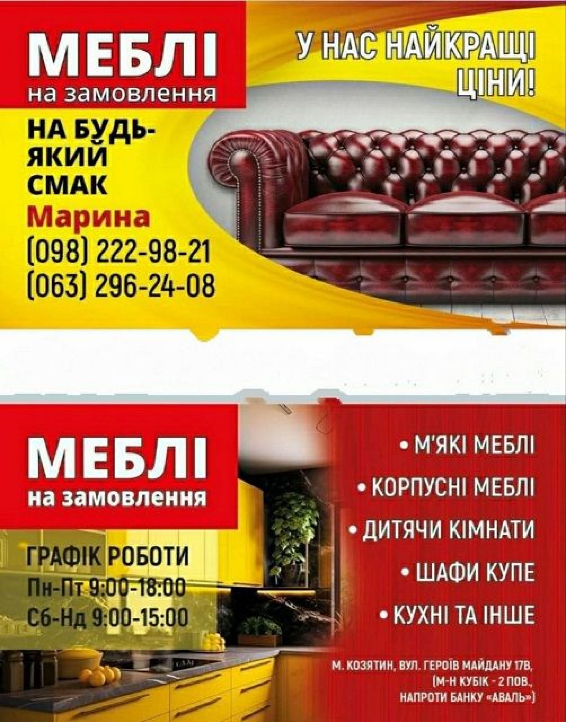 Фейсбук: mebli.koziatyn2024
