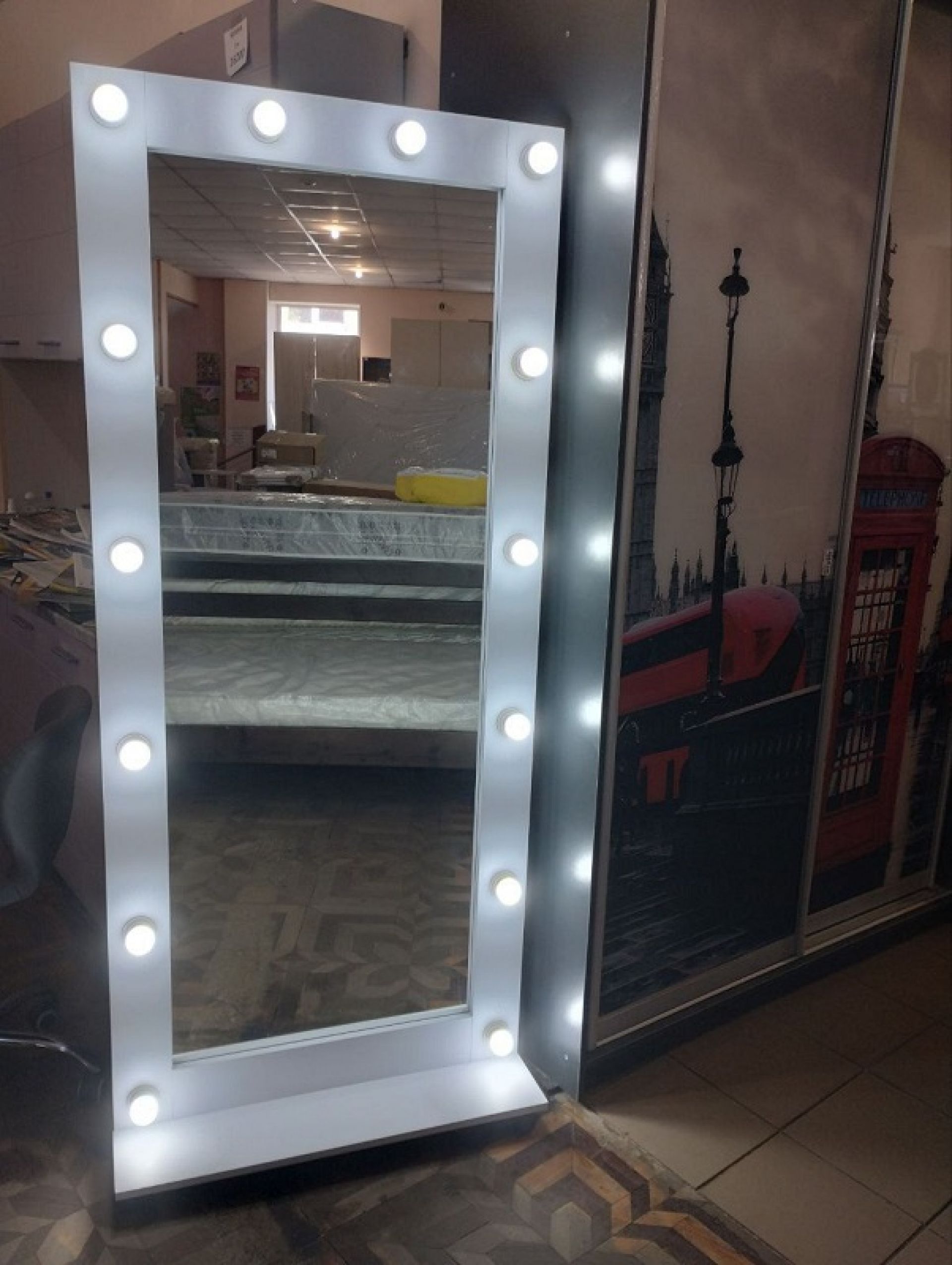 - Дзеркала з підсвіткою, навісні полички