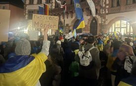 На третю річницю повномасштабного вторгнення в німецькому Франкфурті-на-Майні провели мирну демонстрацію на підтримку України.